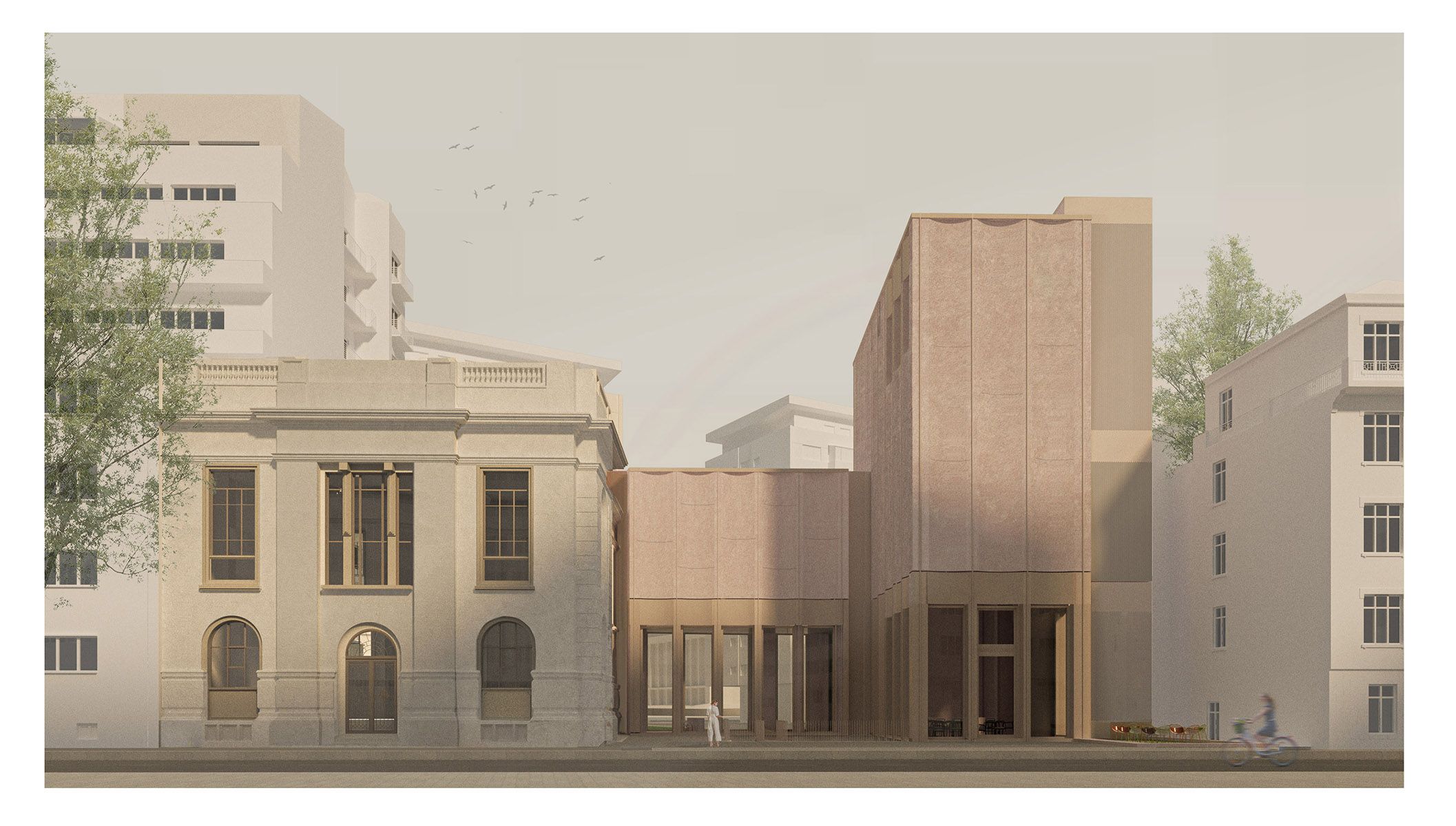 The intervention strategy complements the existing logic on the site, following the tram tracks and composing an ensemble that collaborates with what already exists. The exception in the urban fabric is leveraged, the boundaries become a permeable membrane, existing enclosures are preserved, but entrances are created towards the ensemble.